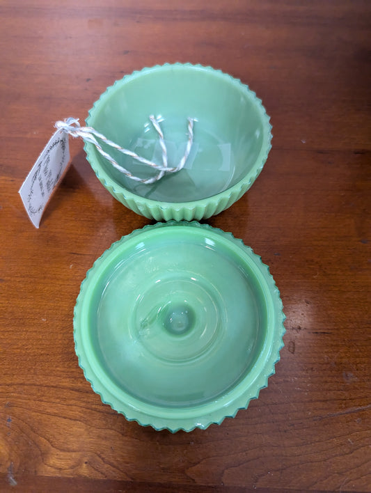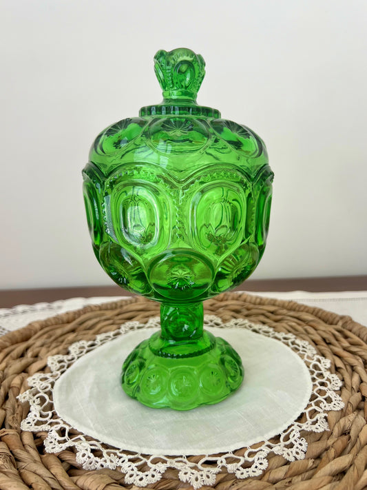 L.E. Smith Moon & Star, Green Lidded Compote | Candy Jar