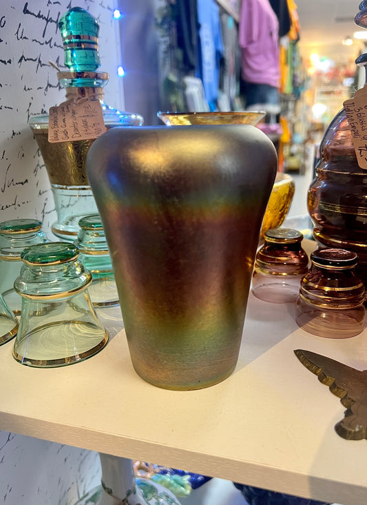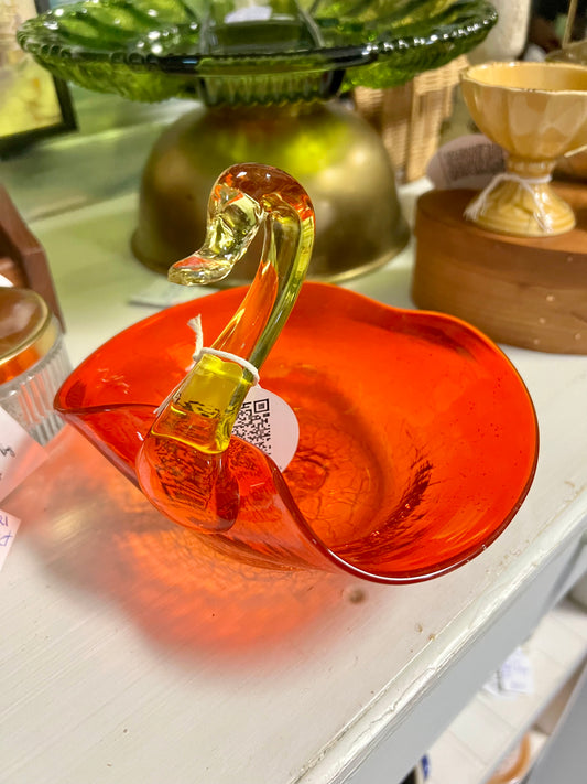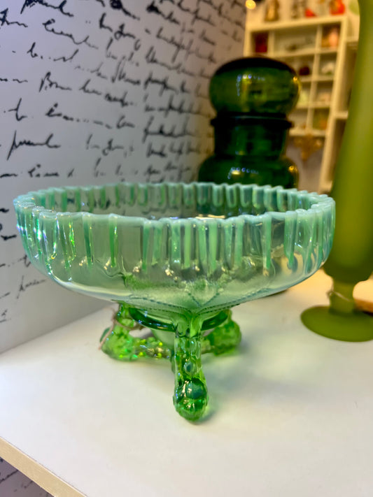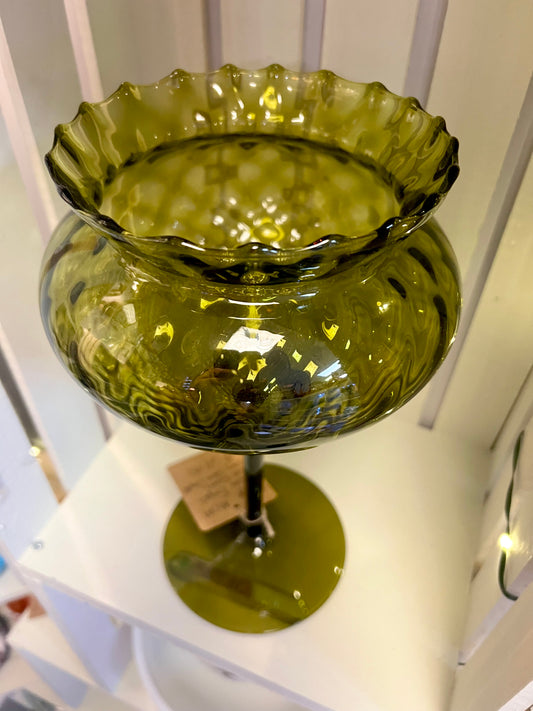 Vintage MCM Italian Empoli Olive Green Long Stem Compote