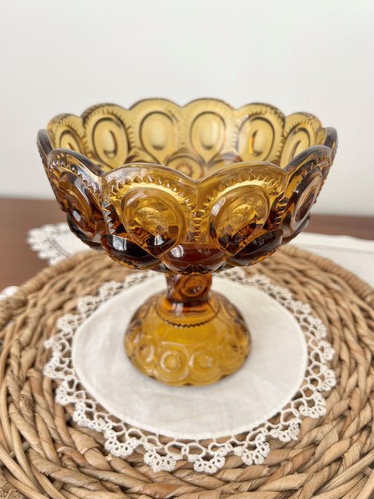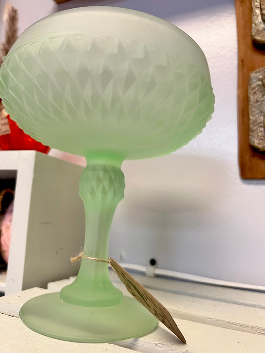 Vintage Indiana Glass Co. Frosted / Satin Diamond Point Stemmed Compote