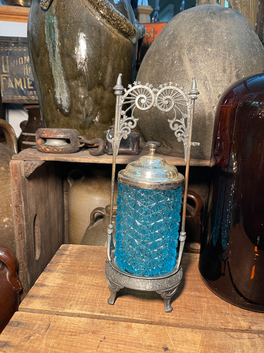 Antique Victorian Blue Daisy and Button Pattern Pickle Castor