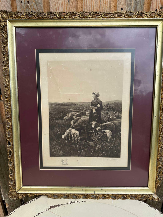 William Wellstood Lithograph on Silk Print “Shepherdess”