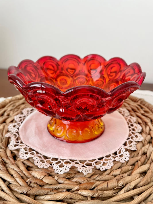 L.E. Smith Moon & Star, Amberina Footed Bowl Cadmium Glow